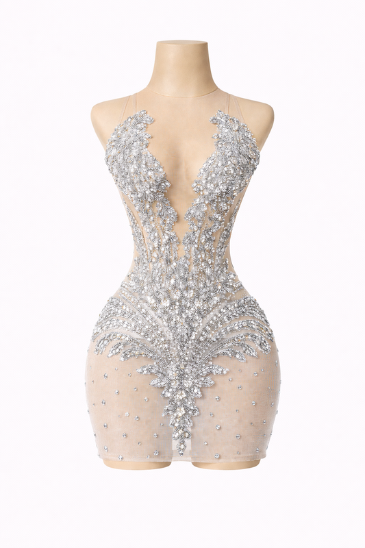 Fabric: Premium stretch velvet with a soft, luminous finish. Designed with sheer stretch mesh at the...