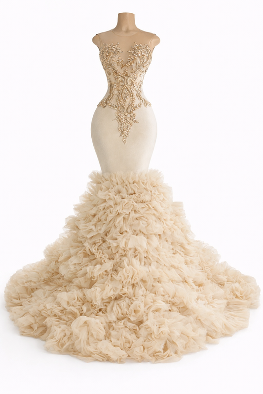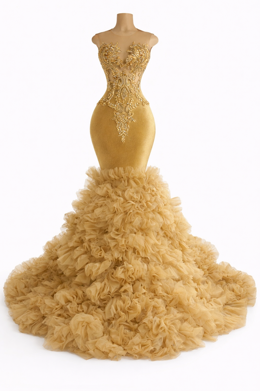 Fabric: Luxe stretch velvet with a soft shimmer finish, paired with sheer illusion mesh and...
