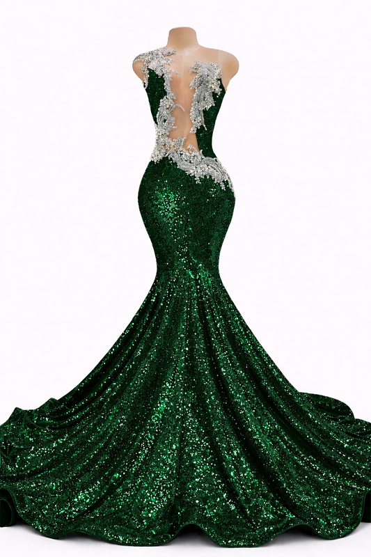 Fabric: Premium stretch sequin fabric with an allover light-catching finish, paired with sheer illusion mesh...