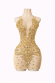 Fabric: Premium stretch velvet with a plush, sculpting finish. The front features sheer stretch mesh, layered with appliqué detailing for a seamless, contoured look.